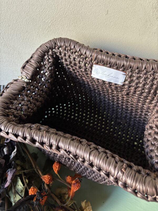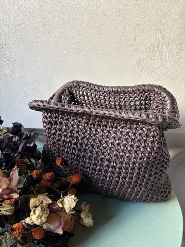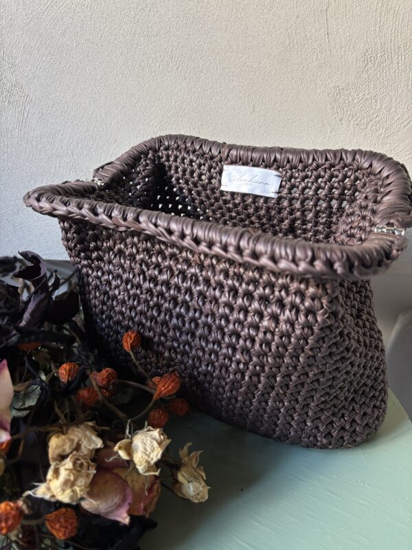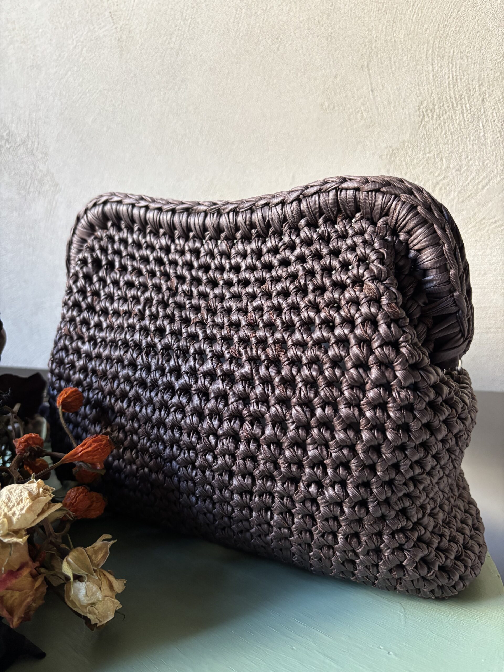 Clutch realizzata a mano in ecopelle colorazione marrone.