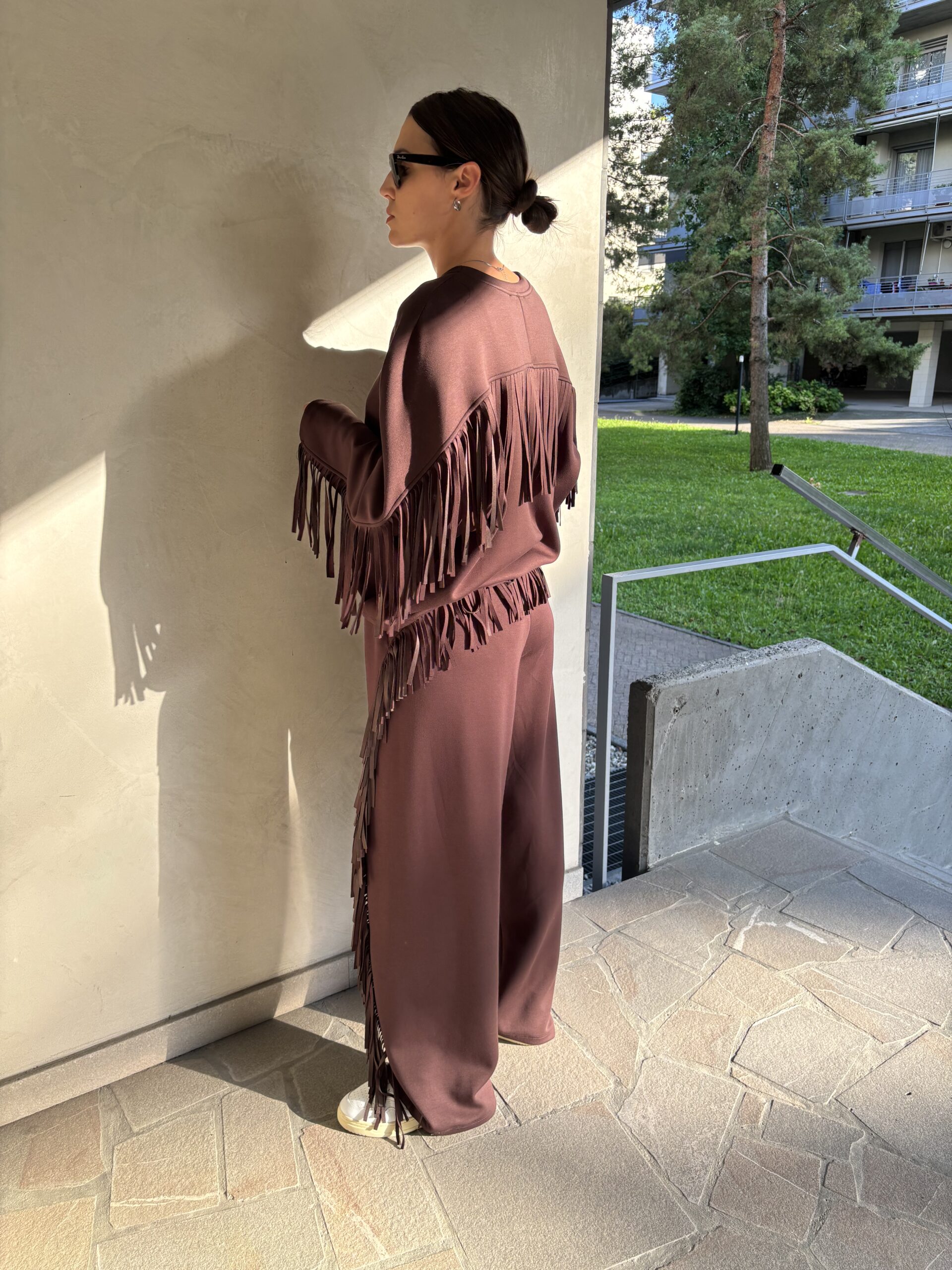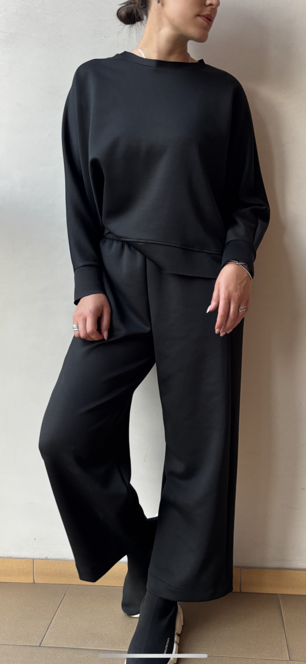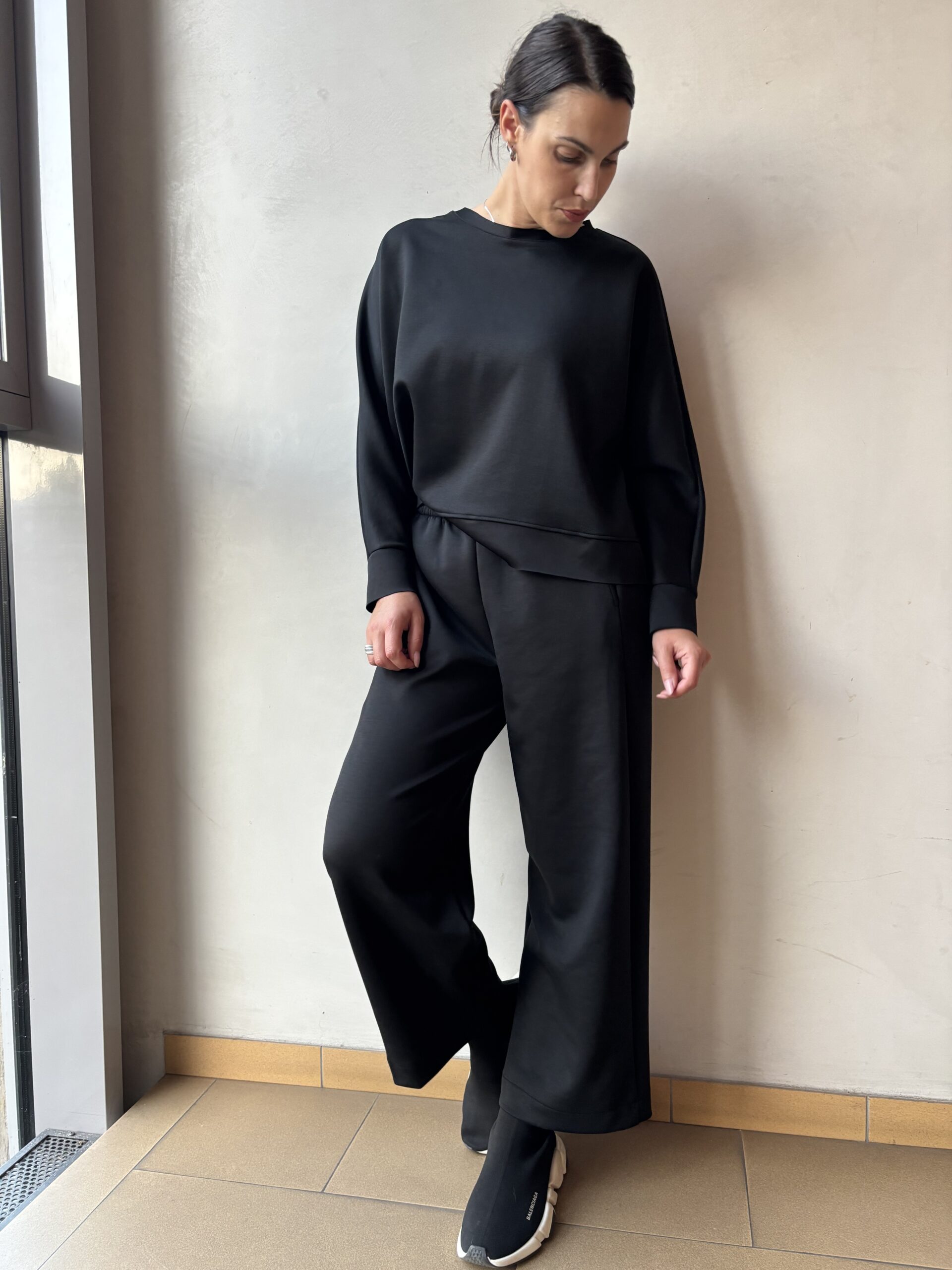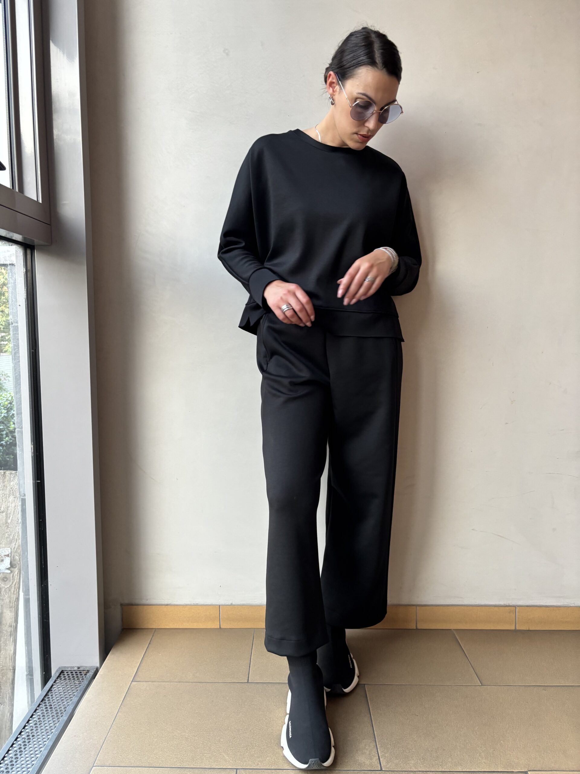 Coordinato in tuta composto da pantalone e felpa girocollo in tessuto leggero.