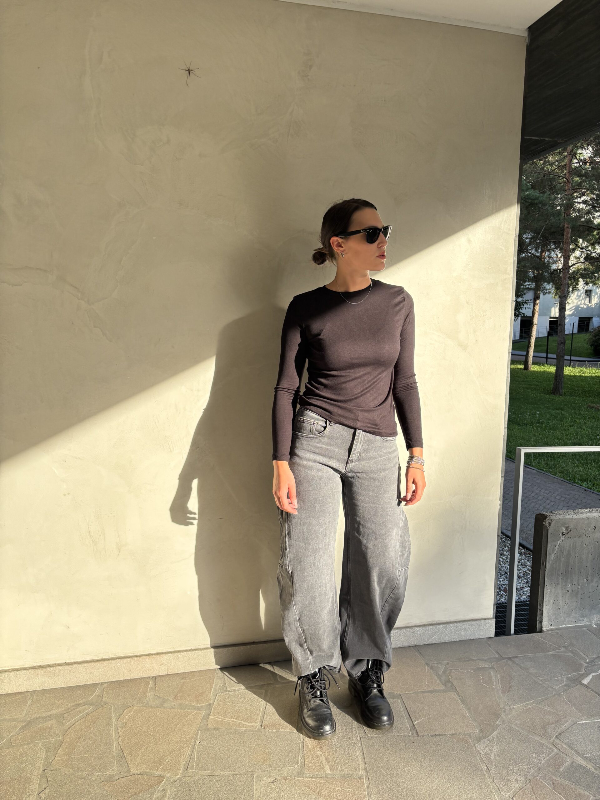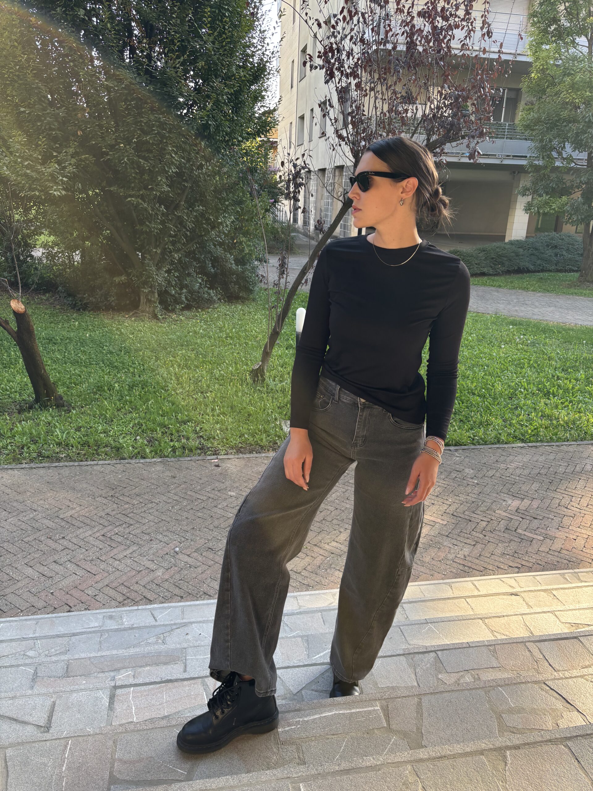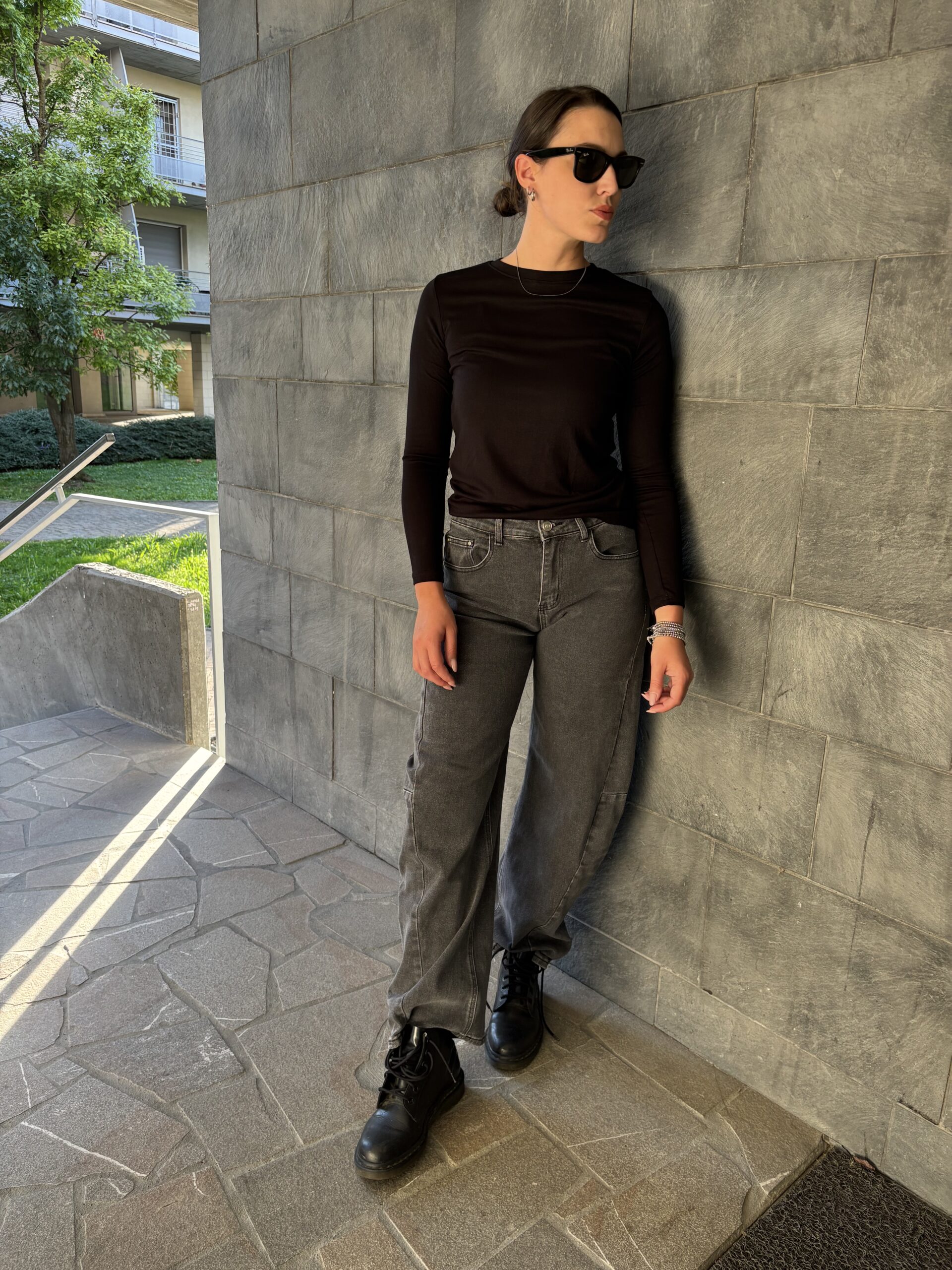 Jeans modello semi palloncino, con dettaglio cuciture sulla gamba.